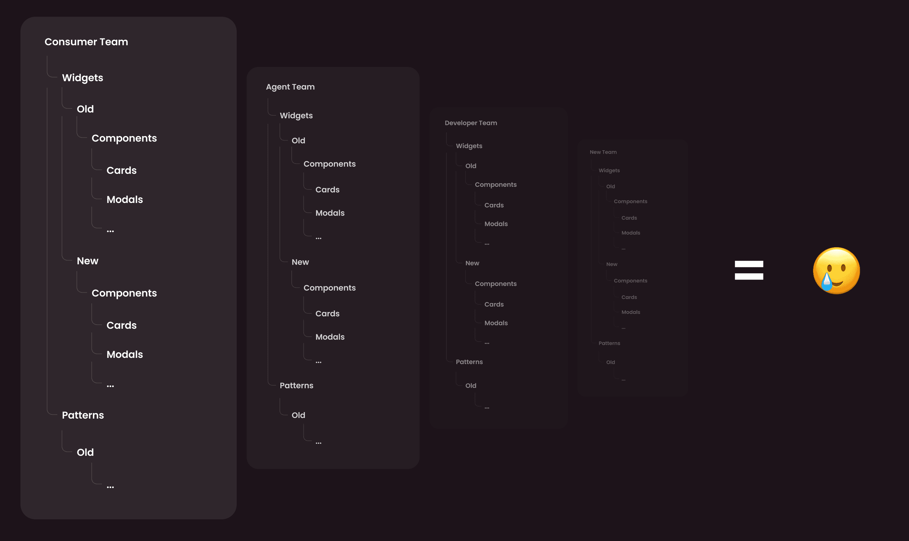 Over the years, as our products expanded, our original system started showing signs of wear. Different teams made different choices. Components evolved in silos due to multiple geographical demands. Language and currency presented key challenges that demanded extra attention. What started as a clean structure became a patchwork.